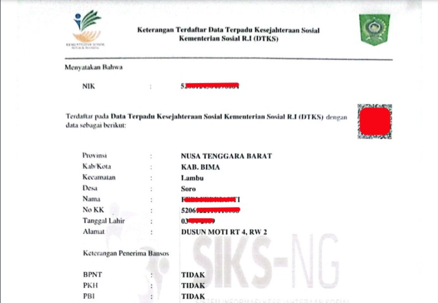 Jika belum terdaftar di DTKS. Silahkan ajukan ke Dinas Sosial Kabupaten/Kota/Operator SIKS NG.